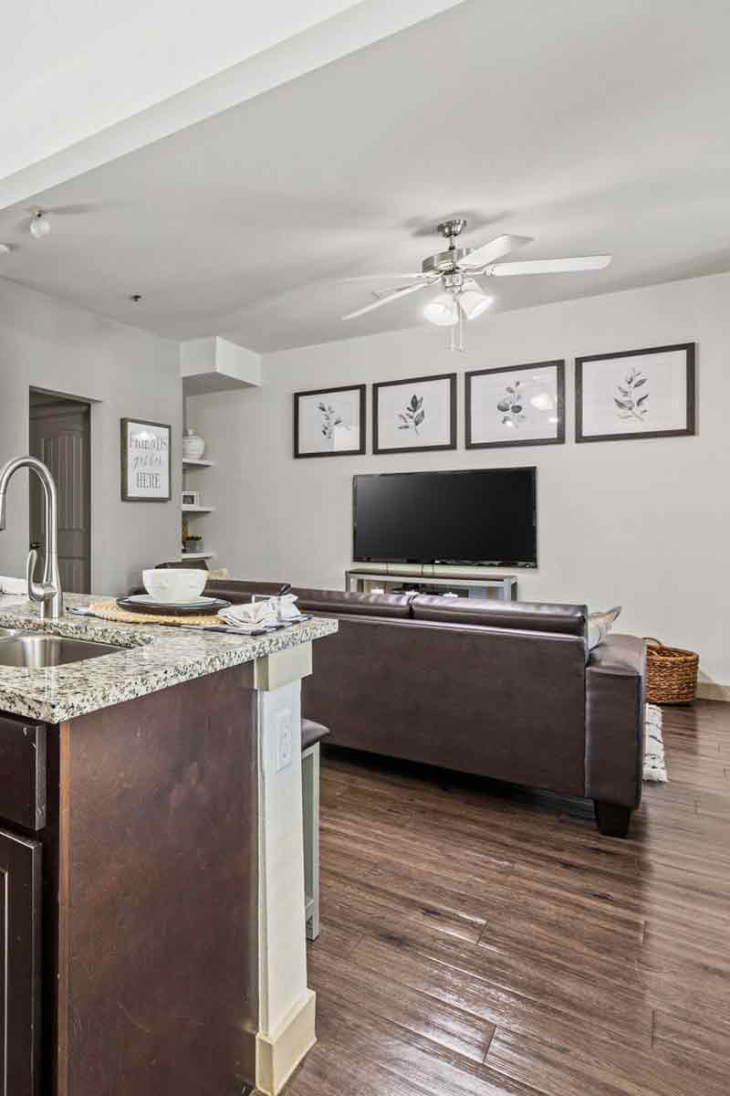 Two bedroom view to living area
